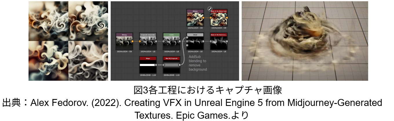 本レポートの考察は、具体的な事例研究の手法を用いて行う。先行事例として、生成AIであるMidjourneyをリアルタイムVFXの制作に活用した事例報告(Alex Fedorov, 2022)に着目した。