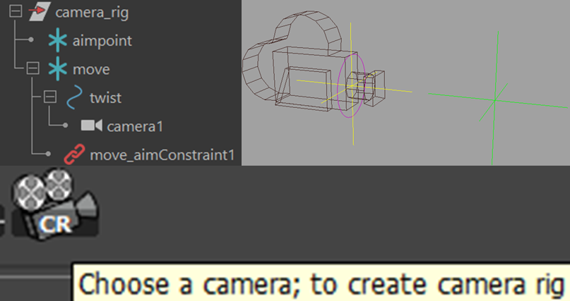 import pymel.core as pmdef setup_camera_rig(): # Get the selected camera sel = pm.selected() if not sel: pm.error("Please select a camera!") camera = sel[0] # Check if the selected object is a camera shape if not isinstance(camera.getShape(), pm.nt.Camera): pm.error("Selected object is not a camera!") # Check if camera has locked attributes locked_attrs = [] for attr in ['translate', 'rotate', 'scale']: for axis in ['X', 'Y', 'Z']: if camera.attr(f'{attr}{axis}').isLocked(): locked_attrs.append(f'{attr}{axis}') if locked_attrs: pm.error(f"Camera has locked attributes: {', '.join(locked_attrs)}. Please unlock them before running the script.") # Get the camera's world position, rotation, scale, and forward direction cam_pos = pm.xform(camera, q=True, ws=True, t=True) cam_rot = pm.xform(camera, q=True, ws=True, ro=True) cam_scale = pm.xform(camera, q=True, s=True) cam_matrix = pm.xform(camera, q=True, ws=True, m=True) forward = pm.datatypes.Vector(cam_matrix[8], cam_matrix[9], cam_matrix[10]) * -1 # Reverse forward # Create move locator move = pm.spaceLocator(name='move') pm.xform(move, ws=True, t=cam_pos, ro=cam_rot, s=cam_scale) # Create aimpoint locator 6 units in front aimpoint = pm.spaceLocator(name='aimpoint') aim_pos = pm.datatypes.Vector(cam_pos) + (forward * 6) pm.xform(aimpoint, ws=True, t=aim_pos, ro=cam_rot, s=cam_scale) # Create twist circle twist = pm.circle(name='twist', normal=(0,1,0))[0] pm.xform(twist, ws=True, t=cam_pos, ro=cam_rot, s=cam_scale) pm.rotate(twist, (90, 0, 0), r=True, os=True, fo=True) twist.scale.set(0.5 * cam_scale[0], 0.5 * cam_scale[1], 0.5 * cam_scale[2]) # Create group for the camera rig camera_rig = pm.group(em=True, name='camera_rig') pm.xform(camera_rig, ws=True, t=cam_pos) # Build the hierarchy (important: parent twist first before freezing) pm.parent(aimpoint, camera_rig) pm.parent(move, camera_rig) pm.parent(twist, move) pm.parent(camera, twist) # Freeze twist transforms AFTER parenting pm.makeIdentity(twist, apply=True, t=True, r=True, s=True, n=0) # Create an aimConstraint on move locator pm.aimConstraint( aimpoint, move, name='move_aimConstraint1', aimVector=(1, 0, 0), upVector=(0, 1, 0), worldUpType='scene', maintainOffset=True ) # Freeze aimpoint transforms (only translate and rotate) pm.makeIdentity(aimpoint, apply=True, t=True, r=True, n=0) # Lock camera translate/rotate/scale but keep visible for attr in ['translate', 'rotate', 'scale']: for axis in ['X', 'Y', 'Z']: channel = camera.attr(f'{attr}{axis}') channel.lock() channel.setKeyable(True) # Select the camera rig pm.select(camera_rig) print("Camera rig created successfully!")# Executesetup_camera_rig()